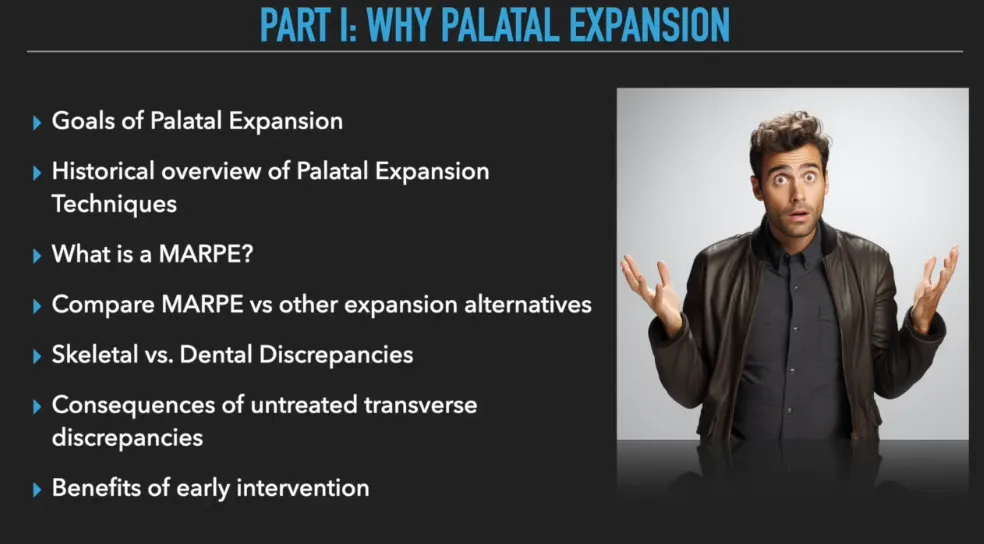 An in-depth understanding of the rationale, benefits, and historical evolution of palatal expansion, focusing on MARPE (Micro-implant Assisted Rapid Palatal Expansion) as a key technique.